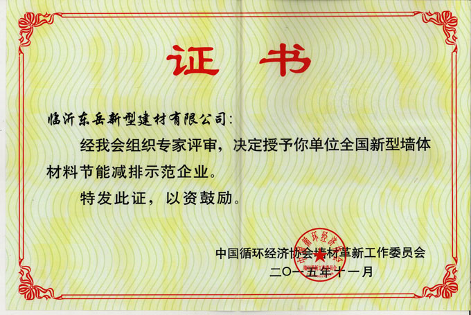 東岳建材獲獎(jiǎng)證書