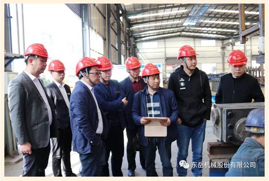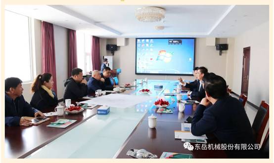 參觀后,公司副總裁鄧奎先生對東岳機(jī)械目前發(fā)展?fàn)顩r、市場情況進(jìn)行了詳細(xì)介紹,技術(shù)研發(fā)中心分別從工藝規(guī)劃布局、機(jī)械設(shè)計、電氣控制方面做出了詳細(xì)匯報。湖南飛山奇集團(tuán)李林輝董事長、長樂建材陳時勇總經(jīng)理肯定了東岳機(jī)械近年高速發(fā)展的成果,希望雙方在未來有更加深入的合作!